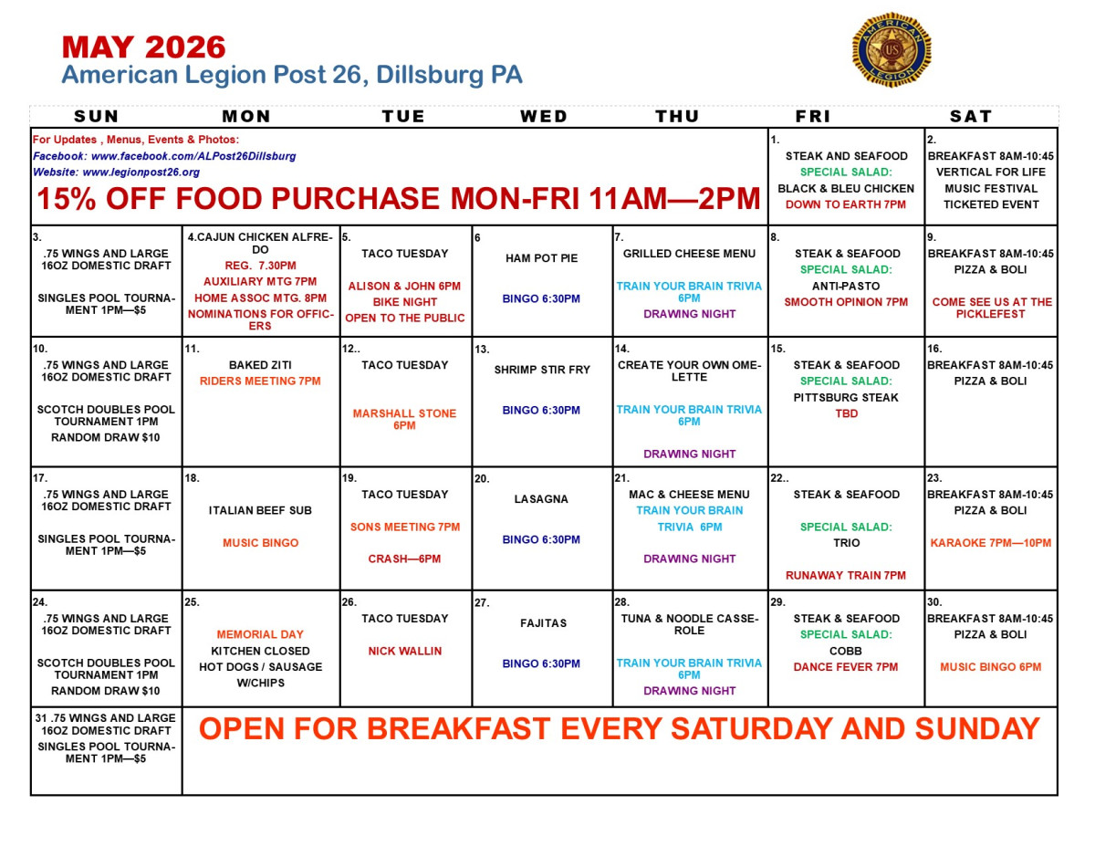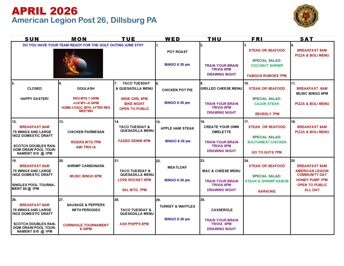 There is always something fun happening at Dillsburg American Legion, Post 26 > VIEW ALL EVENTS